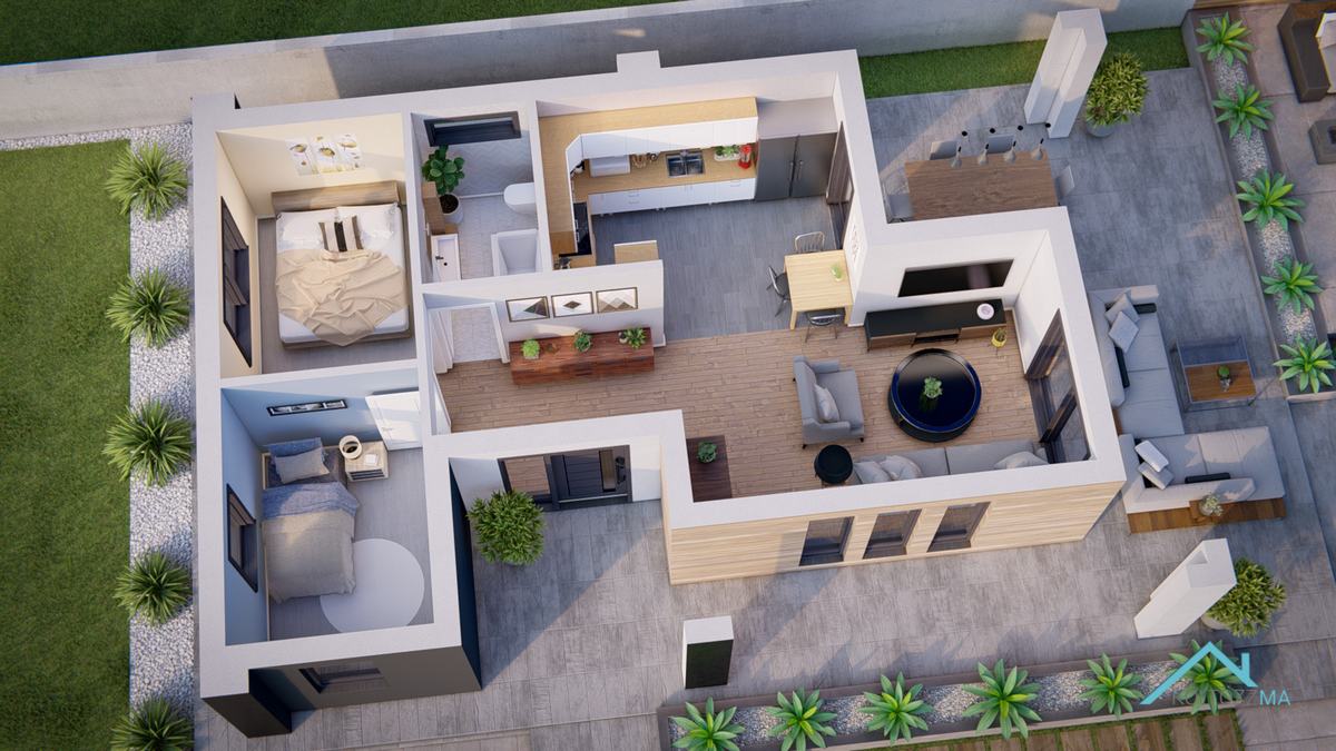 A Fokváros típusú ház hagyományos nyeregtetővel, lapostetővel és finoman eltolt alaprajzzal készült, így egyszerre kínál praktikumot és egyedi megjelenést. Szándékosan kisebb alapterülettel terveztük, hogy igazodjon a kisebb családok, egyedülállók és idősebbek igényeihez, akik kompakt, könnyen fenntartható otthonra vágynak. A házban található szobák rugalmasan kihasználhatók: akár a családtagok számára biztosítanak kényelmes elhelyezést, akár az egyik szobából iroda is kialakítható. A Fokváros ideális választás mindazoknak, akik otthonos, jól kihasználható életteret keresnek.
